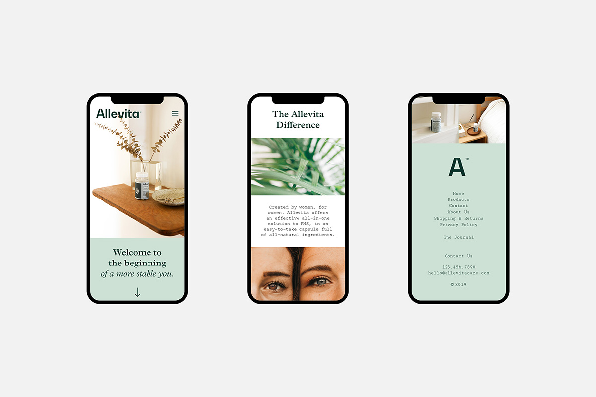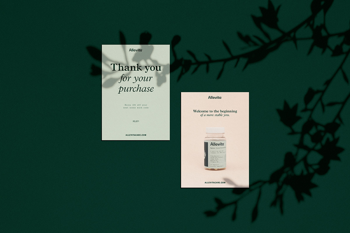 The brand balances softness with structure, creating a sense of reassurance without relying on overt signals. Through restrained typography and packaging, Allevita establishes trust at first encounter and over time.