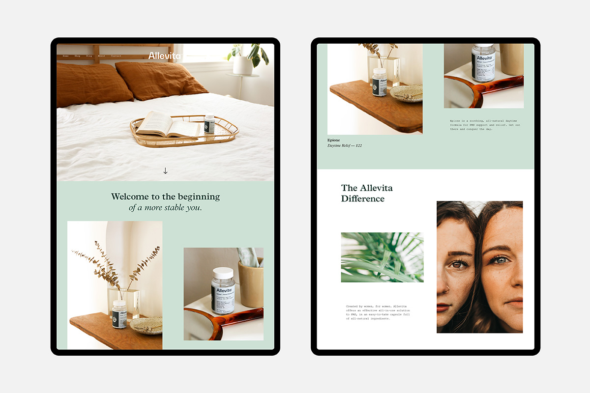 Allevita was developed as a wellness brand centered on women’s experiences of care and balance. Designed for period supplements, the identity needed to communicate reassurance and confidence without leaning on familiar category signals. The resulting brand language is calm and composed, allowing the products to feel supportive and approachable rather than prescriptive.