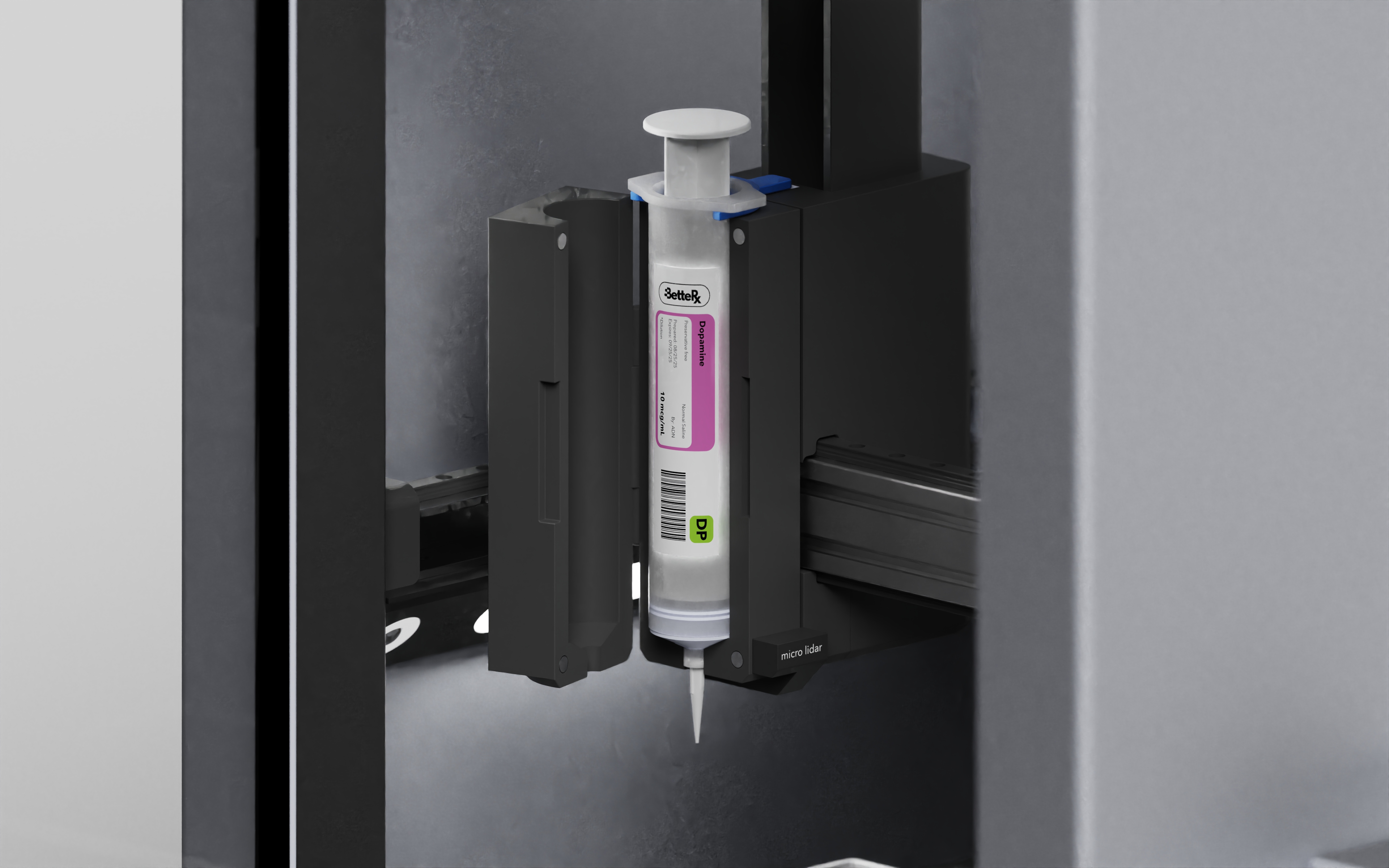 The system was designed as a compact, purpose-built piece of hardware. Form, structure, and interaction were refined to support precision, repeatability, and ease of use in a bench-top setting. Materials and interfaces were selected to withstand clinical environments, resulting in a controlled, reliable machine built for modern pharmacy compounding.