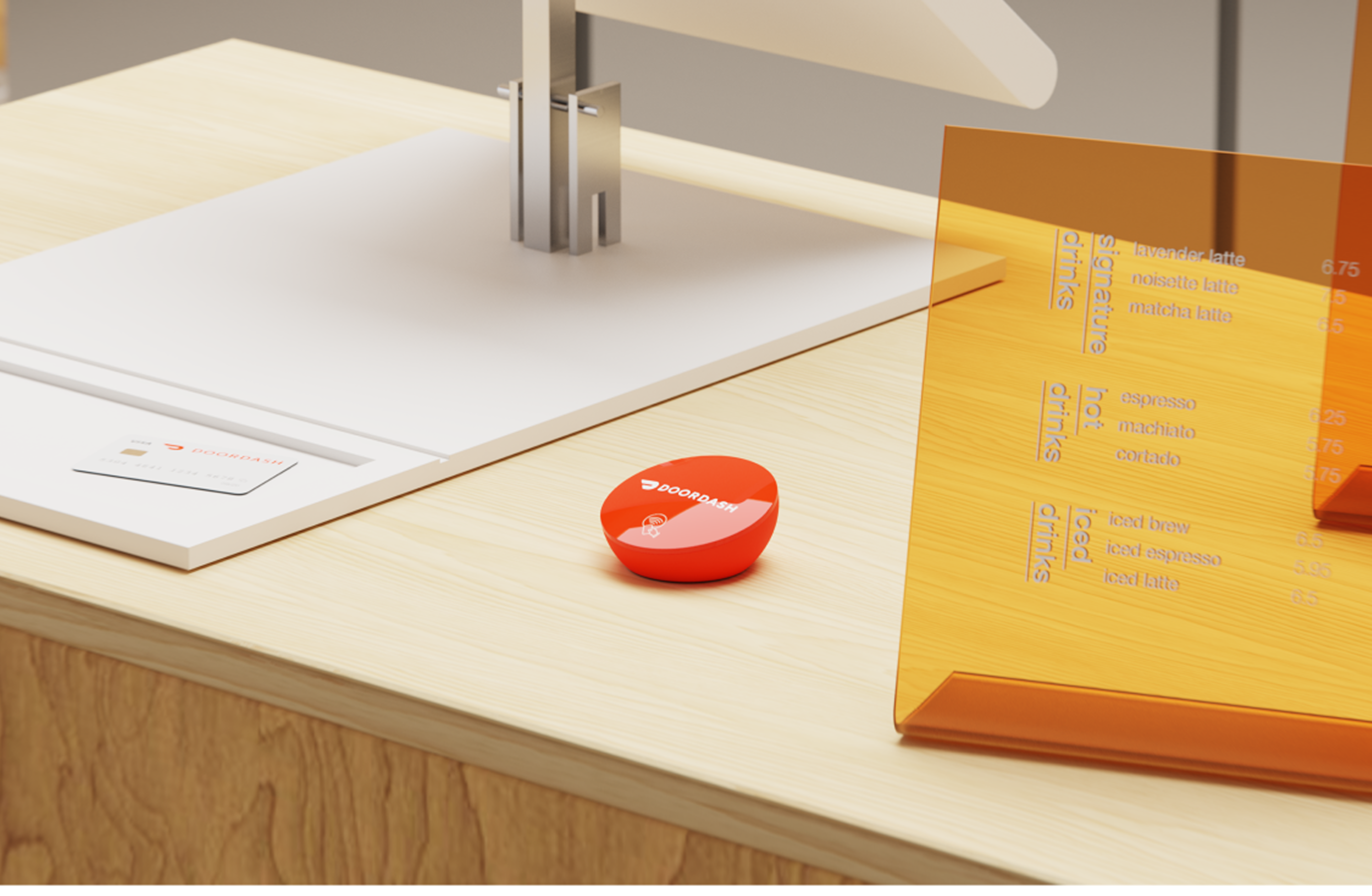 The refined silhouette and clean branding signal the arrival of a dining experience. Clean, controlled execution allows the tile to integrate naturally within the DoorDash brand.