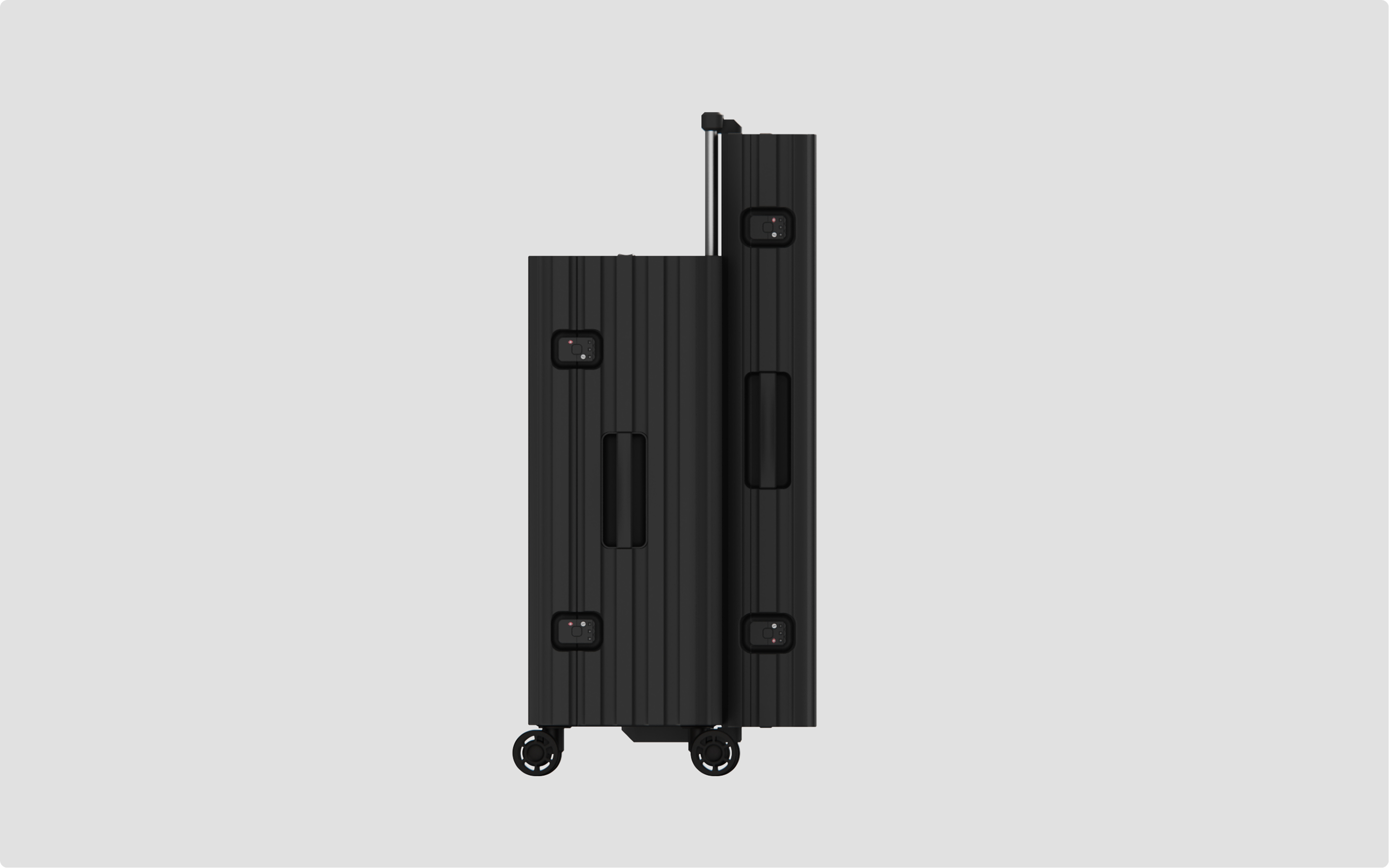 The work defines a complete luggage ecosystem unlike typical travel products. Cases, attachment methods, and accessories were designed in concert, creating a system that adapts across use cases and travel scenarios. By resolving the full experience from structure to connection points, the result is a purpose-built approach to travel luggage that stands apart from everything else.